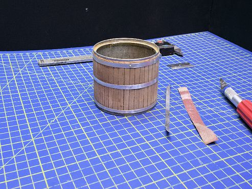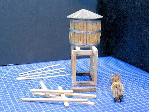 UPDATE: Water Tower Hi all, hope you are safe and keeping well. This update will be in two parts first will be a Bean Can Water Tower, and the second part Pump house and shed all from coffee stirrers also cardboard will be used and brass rod. I have searched the internet for pictures and information to get me started. All are drawn on graph paper to try to keep to scale. First Picture shows a small Bean can you know the one (blue) then the stirrers are cut to length and then stuck to the sides. .jpg?width=590&height=370&fit=bounds) Next I needed Tin strips to go around the can to look like they were holding it all together,found a beer and then cut into strips,then stuck to the wood and pinned with old Victory left over's. .jpg?width=590&height=370&fit=bounds)  Now to build a roof, this was made from a cardboard carton found in the wast bin,this roof will be covered with wood stirrers and stained.  Now to build a strong base for the water tank,I had to make it look good so I stuck a load of stirrers together and made the base.   Next was to make the outlet pipe, this will have more added to it as time goes on, but I thought I would show you it.  .jpg?width=590&height=370&fit=bounds) Well next will be the Tower and Pump House nearly finish it (wont be long) Regards Trev the scratch. Work in progress: Tombstone (Scratch) - San Francisco 2. -The Mayflower ( scratch by plan).